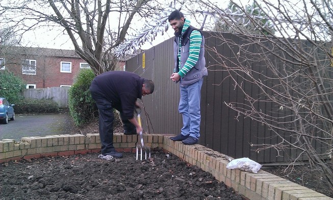 Big thanks to Tracey Medlyn at the Royal Horticultural Society for helping us to plant bulbs in the semi circular brick walled and start us on our journey of making the area look nicer.